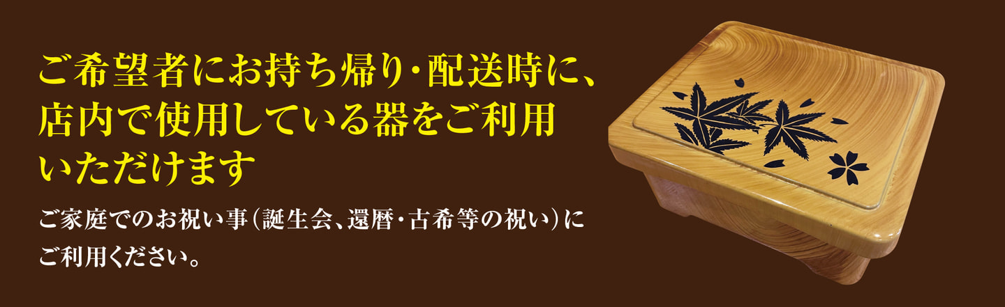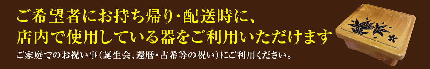 ※要返却/使い終わった器は店舗までご持参願います。(翌々日以降1日あたり500円の延滞金がかかります)※器1個あたり、1000円をお預りさせていただきます(器の返却時にご返金いたします)※現在は「うな重のみ・8個以上」のご注文からご対応可能となります。※器のみの貸し出しは行っておりません。※詳しくはお店までお問い合わせください。